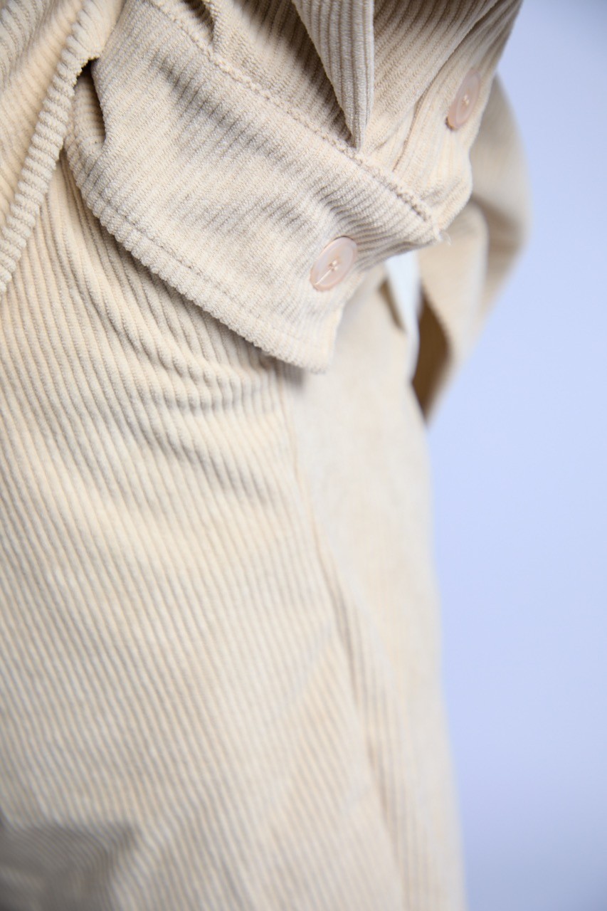 מכנס קורדרוי בגזרה רפויה עם טאץ’ קלאסי ונעים למגע. מתאים לעונה הקרה עם טקסטורה עשירה ומראה אלגנטי-יומיומי.