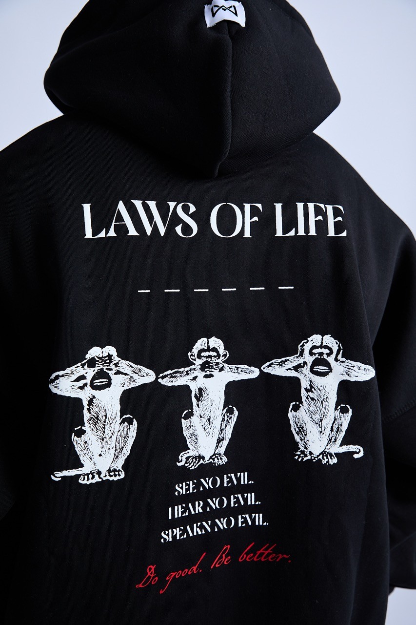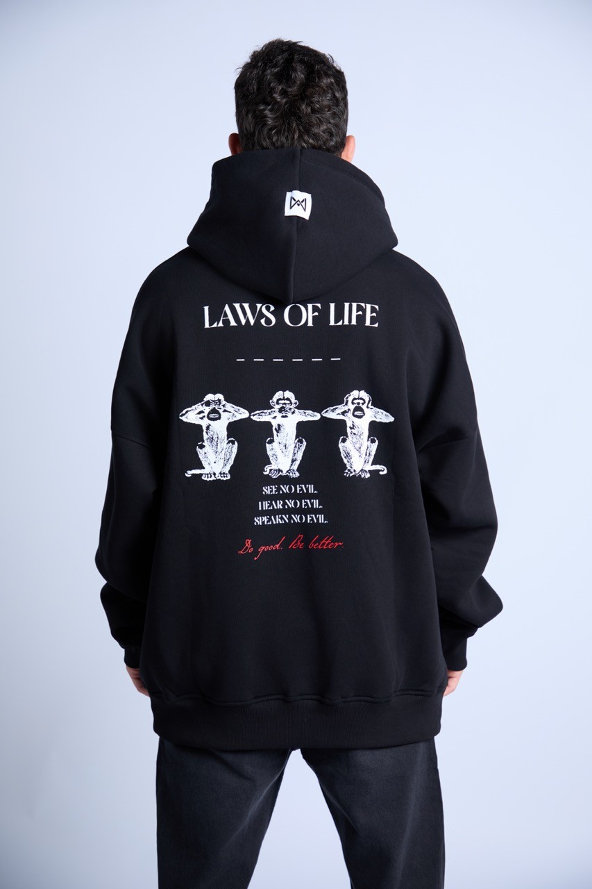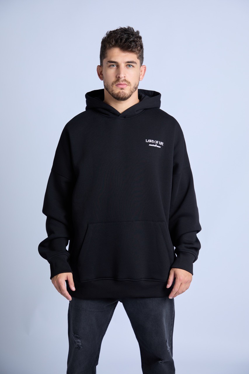 קפוצ’ון אוברסייז עם הדפס גרפי בגב — “LAWS OF LIFE”.