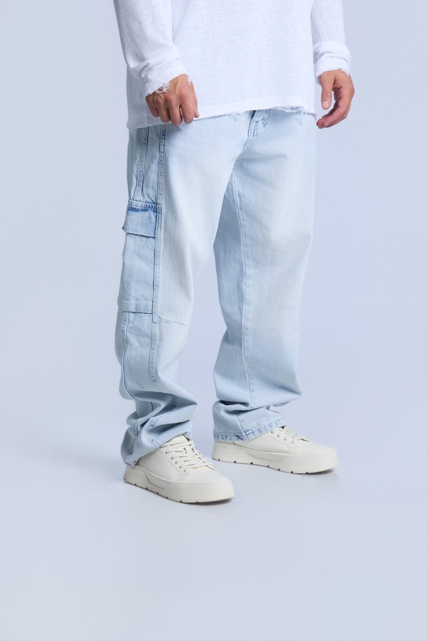 ג׳ינס בגזרת Skater רפויה, בגוון שחור דהוי עם מראה רחוב מודרני ונינוח.