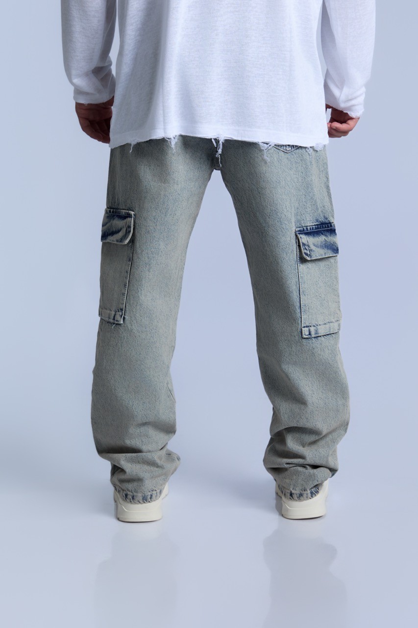 ג׳ינס בגזרת Skater רפויה, בגוון שחור דהוי עם מראה רחוב מודרני ונינוח.